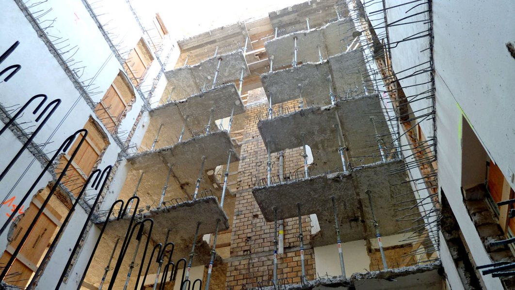 Gesamtinstandsetzung und Umbau der Liegenschaft mit neuen Grundrissen, grösseren Balkonen, neues Treppenhaus mit Lift und bauliche Massnahmen für die Erdbebenertüchtigung.